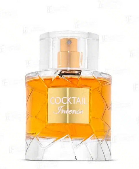 Cocktail Intense de Fragrance World es una fragancia de la familia olfativa Aromática Especiada para Hombres y Mujeres. Cocktail Intense se lanzó en 2021. Las Notas de Salida son coñac, canela y ciruela; las Notas de Corazón son mirra, cachemira y iris; las Notas de Fondo son vainilla, haba tonka y sándalo.