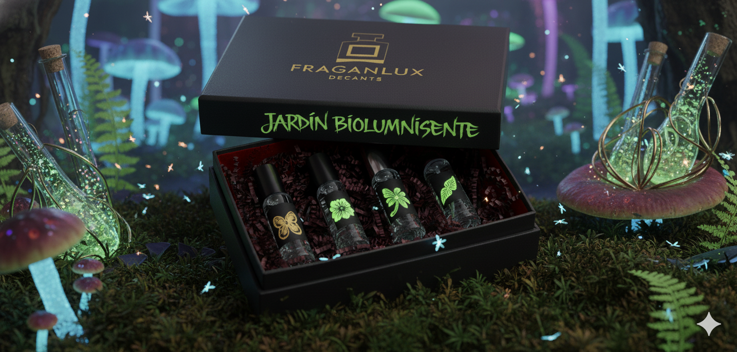 Descubre una colección única de aromas que te transportarán a un mundo encantado donde la naturaleza cobra vida con un brillo propio. Cada decant es una chispa de misterio y belleza, capturando la esencia de un jardín secreto iluminado por la bioluminiscencia.